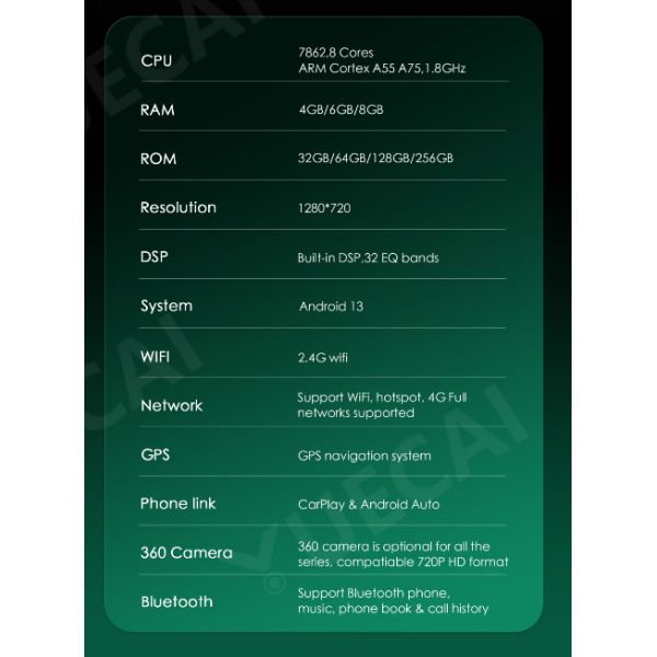 Bluetooth : Support Bluetooth phone,music, phone book & call history